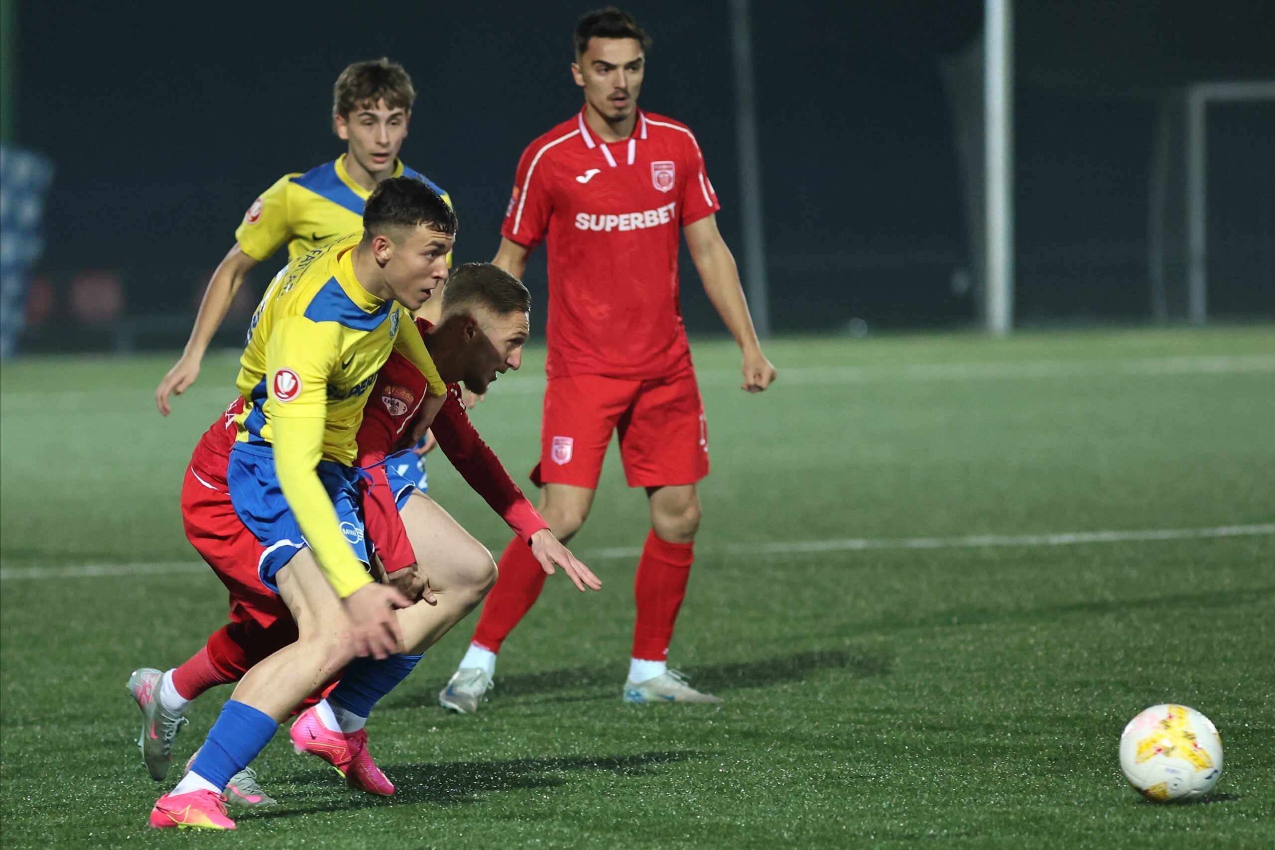 Bucureștenii, aflați la primul meci oficial în 2026, au primit câte două goluri pe repriză. Jovan Markovic a deschis scorul în minutul 28, iar Iustin Doicaru a stabilit, în minutul 43, rezultatul pauzei: 2-0. În partea a doua a întâlnirii a mai înscris de alte două ori Jovan Markovic, în minutele 48 și 62.