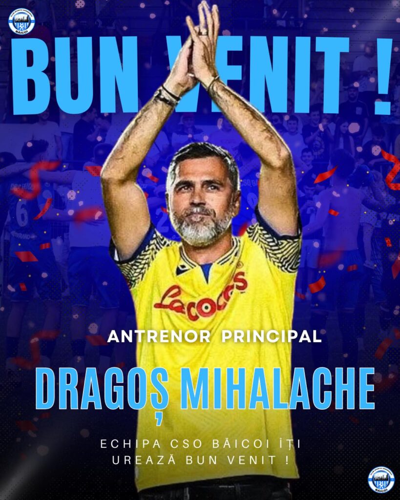 Acum, CSO Băicoi a anunțat venirea în funcția de antrenor principal a lui Dragoș Mihalache. În vârstă de 50 de ani, noul ”tehnician” al CSO Băicoi s-a făcut remarcat la Petrolul Ploiești, dar a mai jucat pentru Otelul Galați, Astra Giurgiu sau Gaz Metan Mediaș în perioada în care era fotbalist.