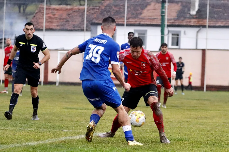 Puțin fotbal și mult chin pe un teren inundat! CSC Șelimbăr a condus, dar a pierd în penultimul minut în fața echipei fostului său antrenor Claudiu Niculescu