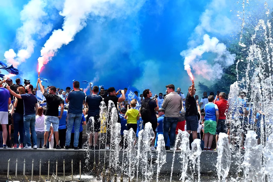 ”Revolta” din centrul Craiovei! Suporterii ”FC U”, scandări către suporterii ”CS U”, după ce elevii lui Ouzounidis s-au bucurat în stradă de câștigarea Cupei României | VIDEO