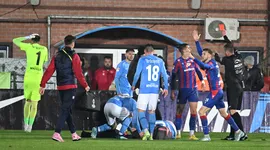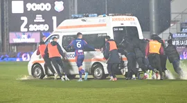 Chemată de arbitru și de jucători pe gazon, ambulanța aflată în colțul celeilalte părți a terenului abia a pătruns pe teren și avansa cu greu. Au urmat momente de solidaritate din partea organizatorilor, copiii de mingi și jucătorii celor două echipe, care s-au implicat și au împins de la spate ambulanța pentru a merge mai repede către Gîț prin gazonul îmbibat cu apă.