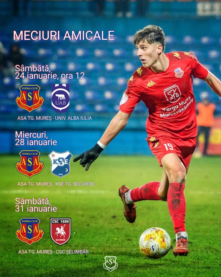 Până în acest moment, este stabilit un meci de verificare în data de 5 februarie, împotriva formației de primă ligă din Ucraina, Epicentr Kamyanets”, a comunicat AFC ASA Târgu Mureș.
