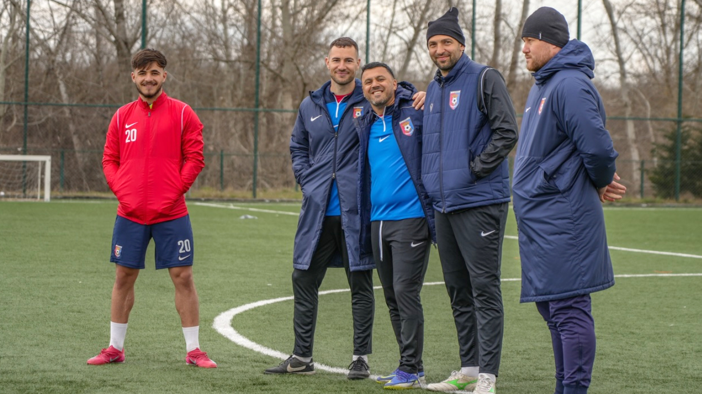 Sergiu Jurj, primul din dreapta, era să-i aducă Chindiei o înfrângere la ”masa verde”, dacă Ilie Poenaru l-ar fi trimis pe teren în meciul cu Metalul Buzău. Atacantul a fost rezervă în acest joc, deși era suspendat pentru cumul de cartonașe galbene!