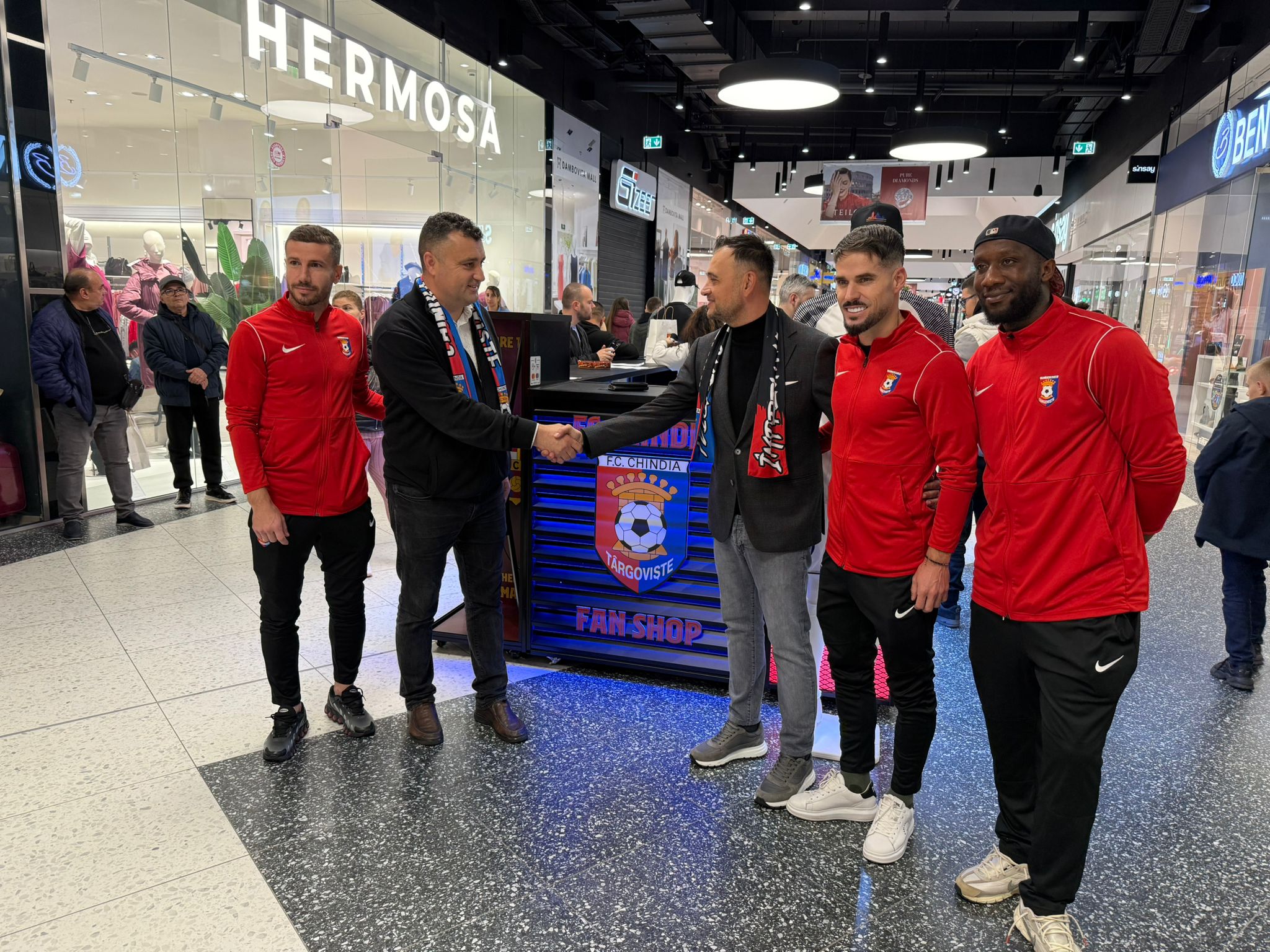 Cu o zi înainte de meciul de acum cu S Afumați, luni după-amiază, la Dâmbovița Mall, ultimul sponsor prezentat de club, a avut loc deschiderea fan-shop-ului Chindiei, în fapt o ”insulă” situată la intrarea în centrul comercial, chiar sub zona de restaurante, locație cu vizibilitate foarte bună.