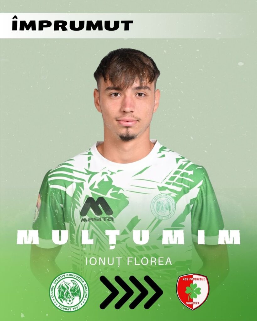 CS Concordia Chiajna anunță transferul sub formă de împrumut, până la finalul acestui sezon, al fundașului central Ionuț Florea la ACS Progresul Fundulea.