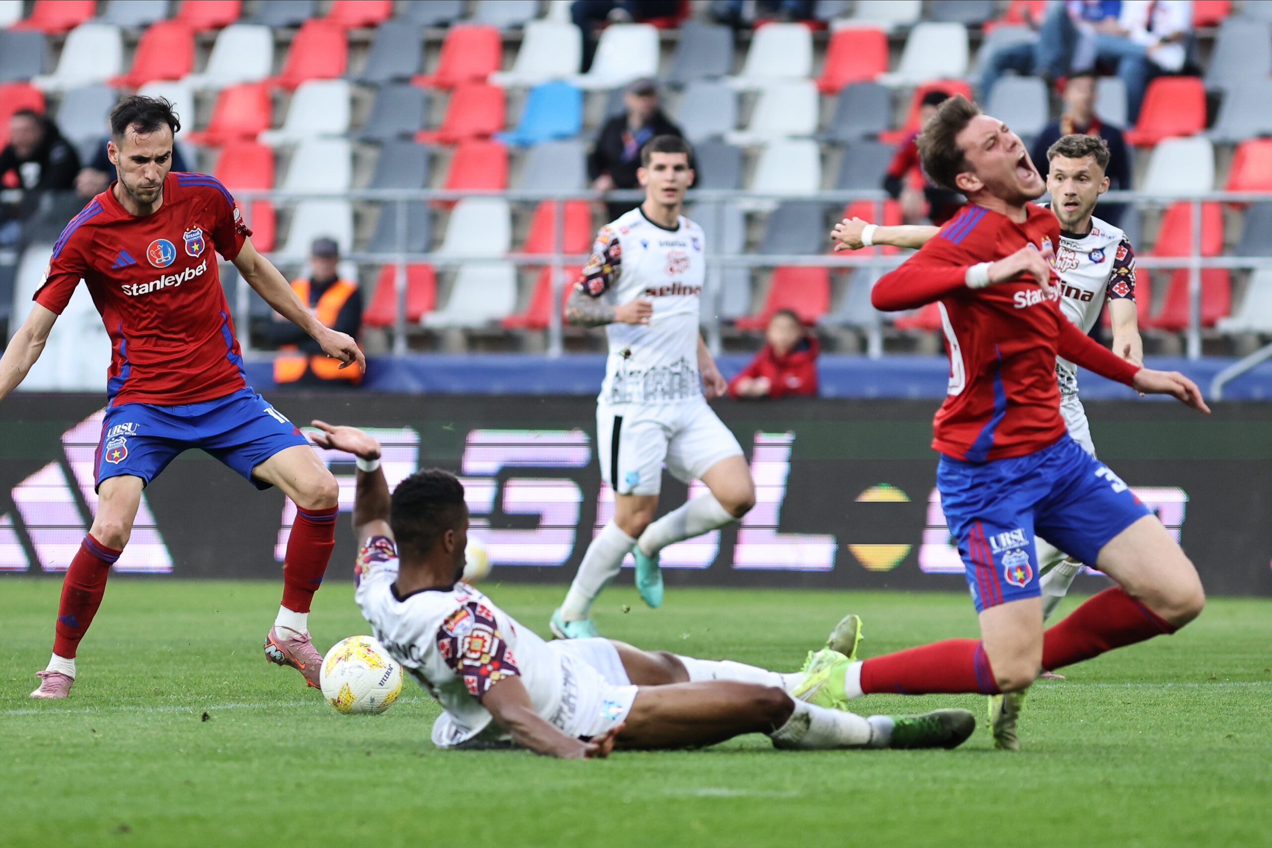 Diferența de scor putea fi mult mai mare încă dinainte de pauză, însă Cadar (45) a parat un șut al lui Chipirliu, apoi steliștii s-au încurcat singuri într-o fază de contraatac și superioritate numerică, iar mai apoi golul reușit de Robert Popescu (45+2) a fost anulat eronat pentru o poziție în afara jocului văzută doar de asistentul Sebastian Păduraru.