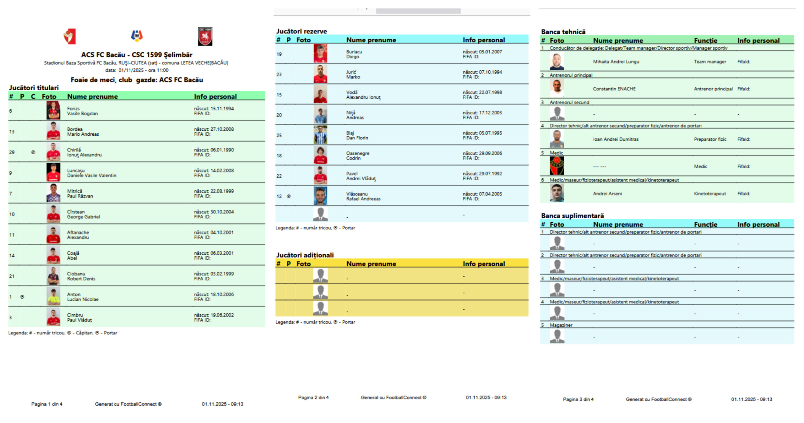 Conform foii de joc a băcăuanilor (foto), jucătorii de rezervă din acest meci au fost Rafael Vlăsceanu – Diego Burlacu, Marko Juric, Alexandru Vodă, Andreas Niță, Florin Blaj, Codrin Oasenegre și Andrei Pavel. Așadar, doar opt jucători, deși clubul putea avea un total de nouă, dar și posibilitatea de a trece alți trei pe lista adițională, unde în raportul de joc nu s-a aflat niciunul de această dată.