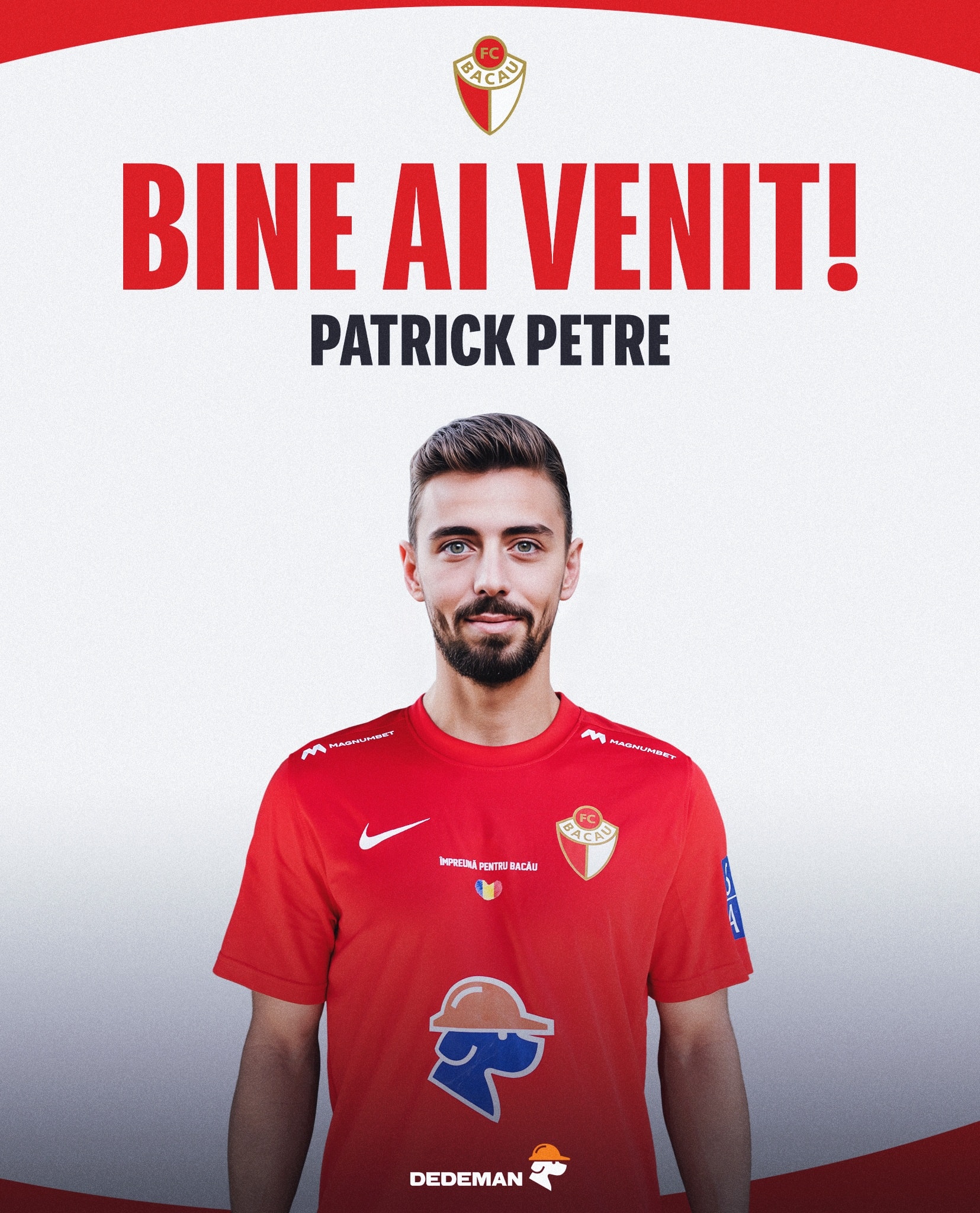 Bine ai venit la FC Bacău, Patrick!”, a mai transmis, a doua zi, FC Bacău, care nu-și informează suporterii și despre faptul că Patrick Petre nu are drept de joc în ultimele șase meciuri rămase de disputat de echipă în 2025.